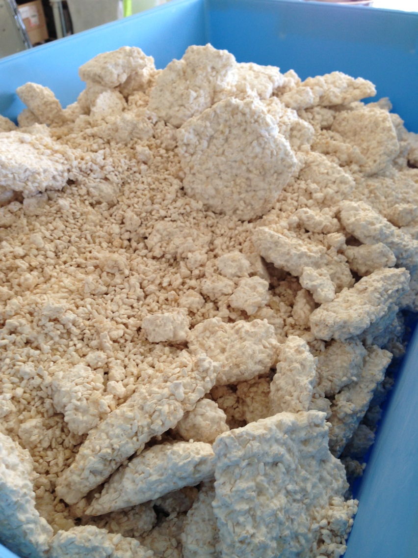 自然栽培米を麹屋さんで麹にしてもらった米麹は、塩と混ぜ合わせておき〜