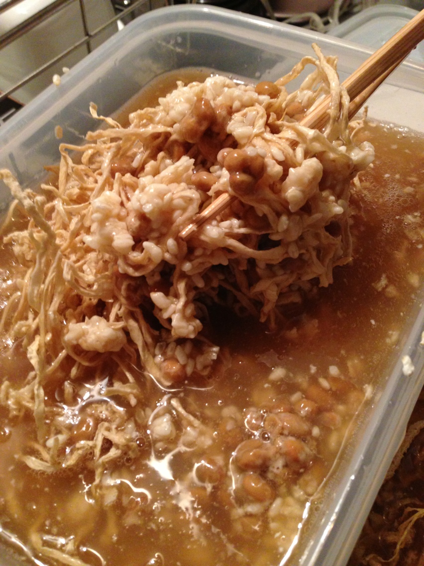 そして、余った大豆の煮汁に、納豆、切干し大根、米麹、昆布、醤油を混ぜた「豆造(とうぞ)」も作りました〜。