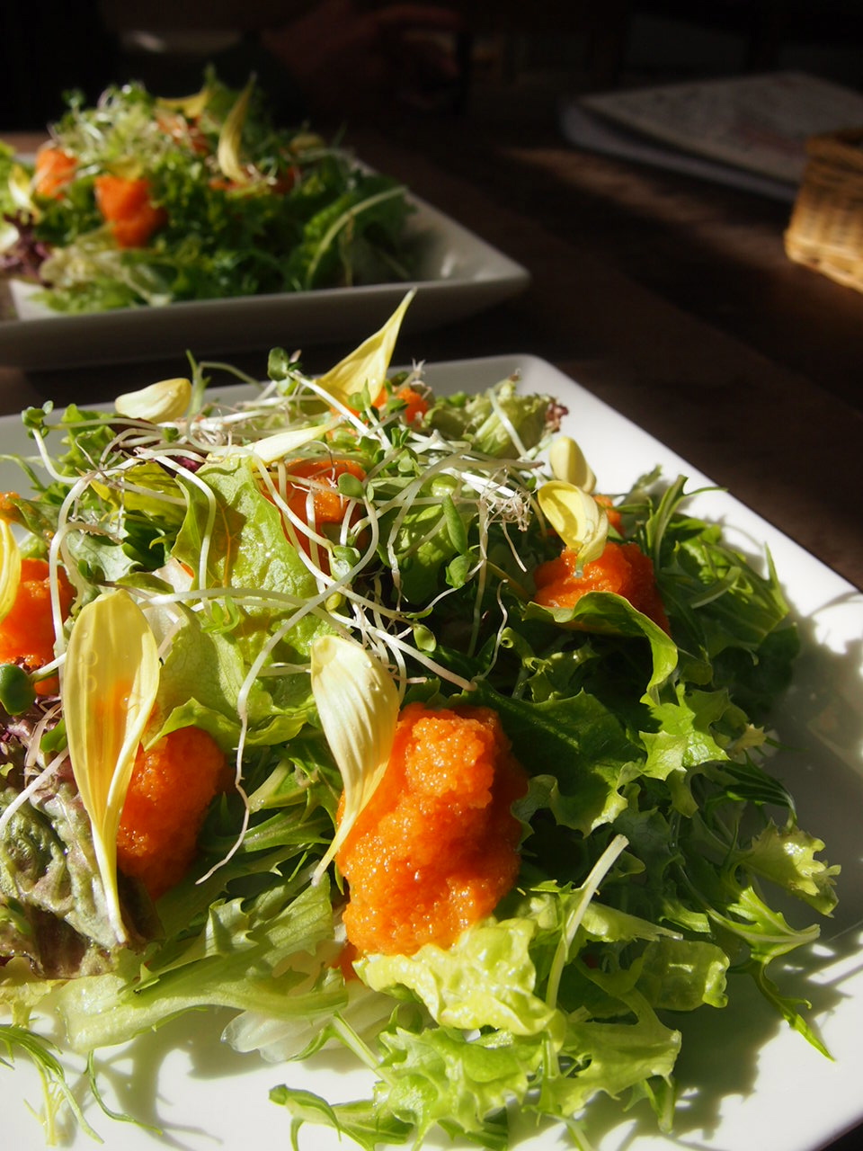 カラダにやさしいからと、調子にのってサイドメニューも頼みました〜。