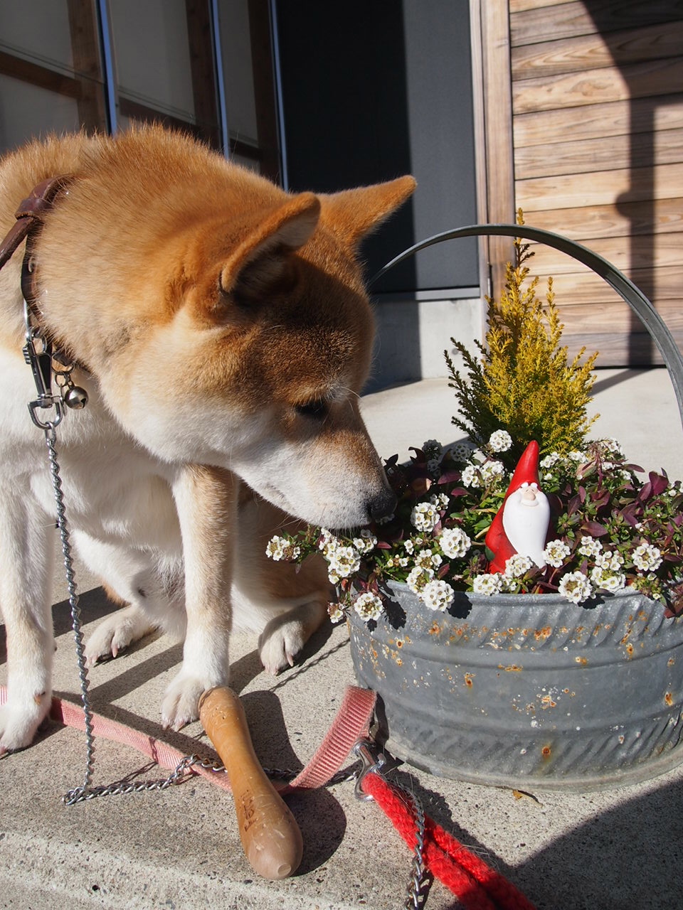 庭にはクリスマス仕様の寄せ植えにサンタさんの置物。