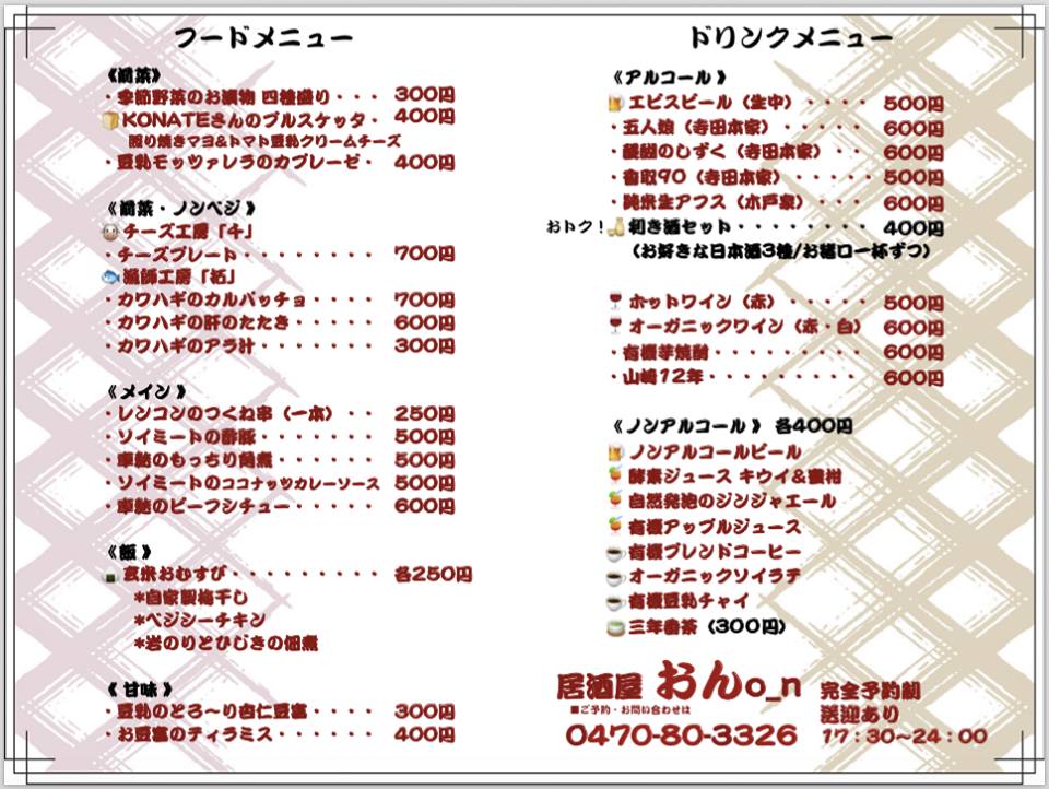 一昨日、昨日とご近所の友人知人に案内を出した「居酒屋おん o_n」を開催しました!