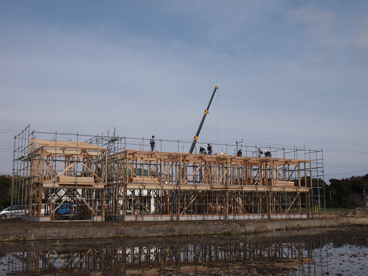 そして二日間、私が差し入れで訪れる度に柱がどんどん建っていて、あっという間に、建物の全体像が見えてきました!