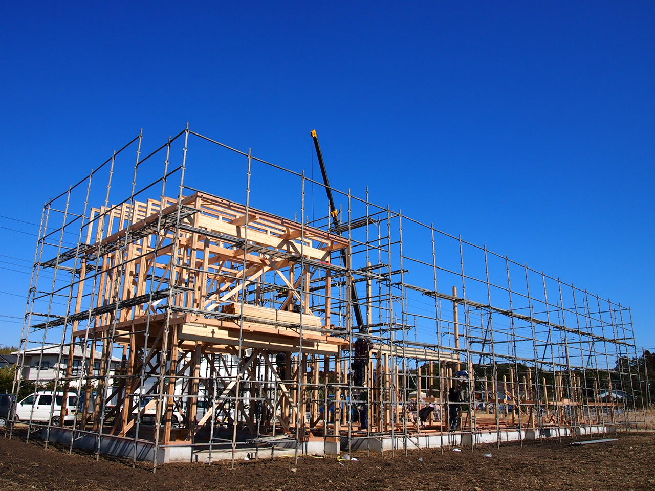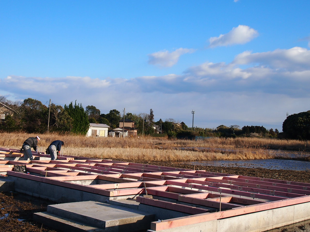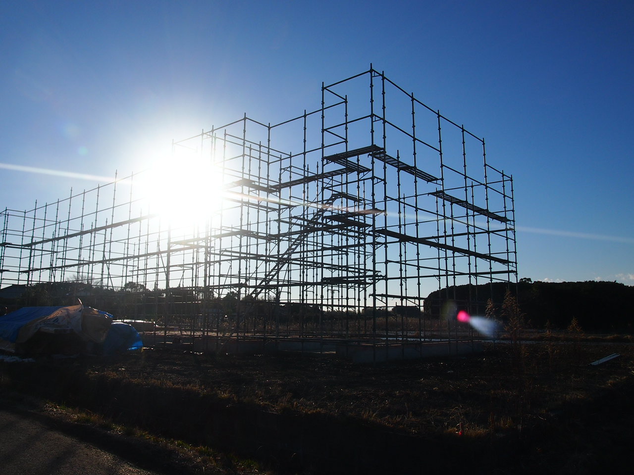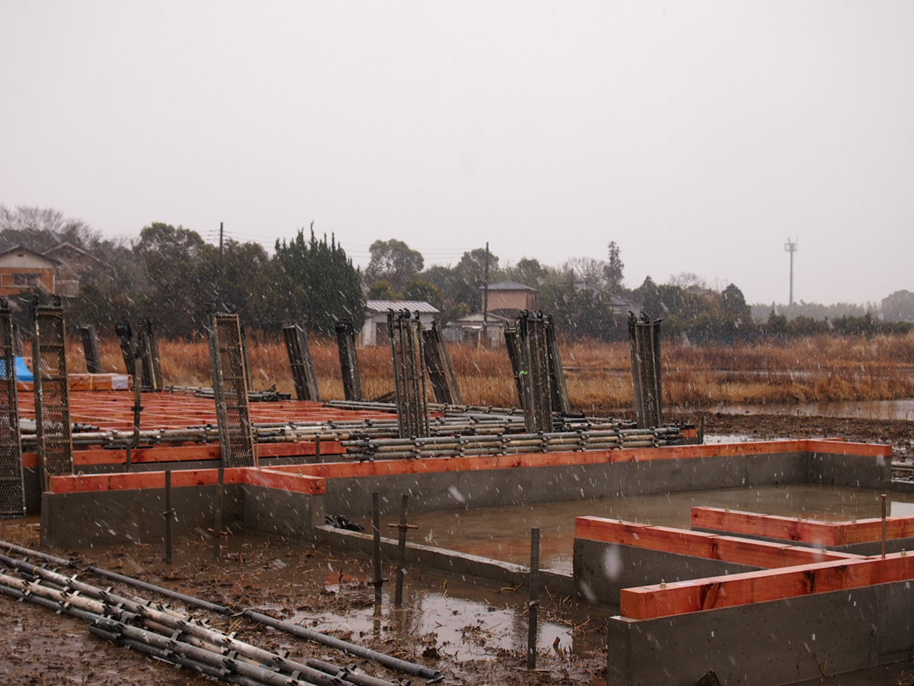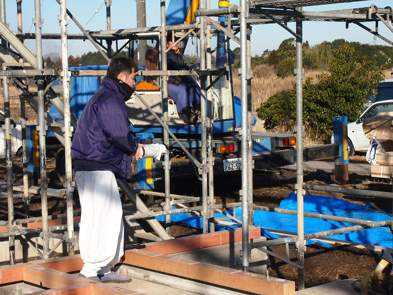 上棟の前々日の雪の日には、土台敷きの検査に立ち会ったり、足場組みをちょっと見学したり。