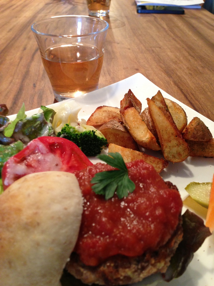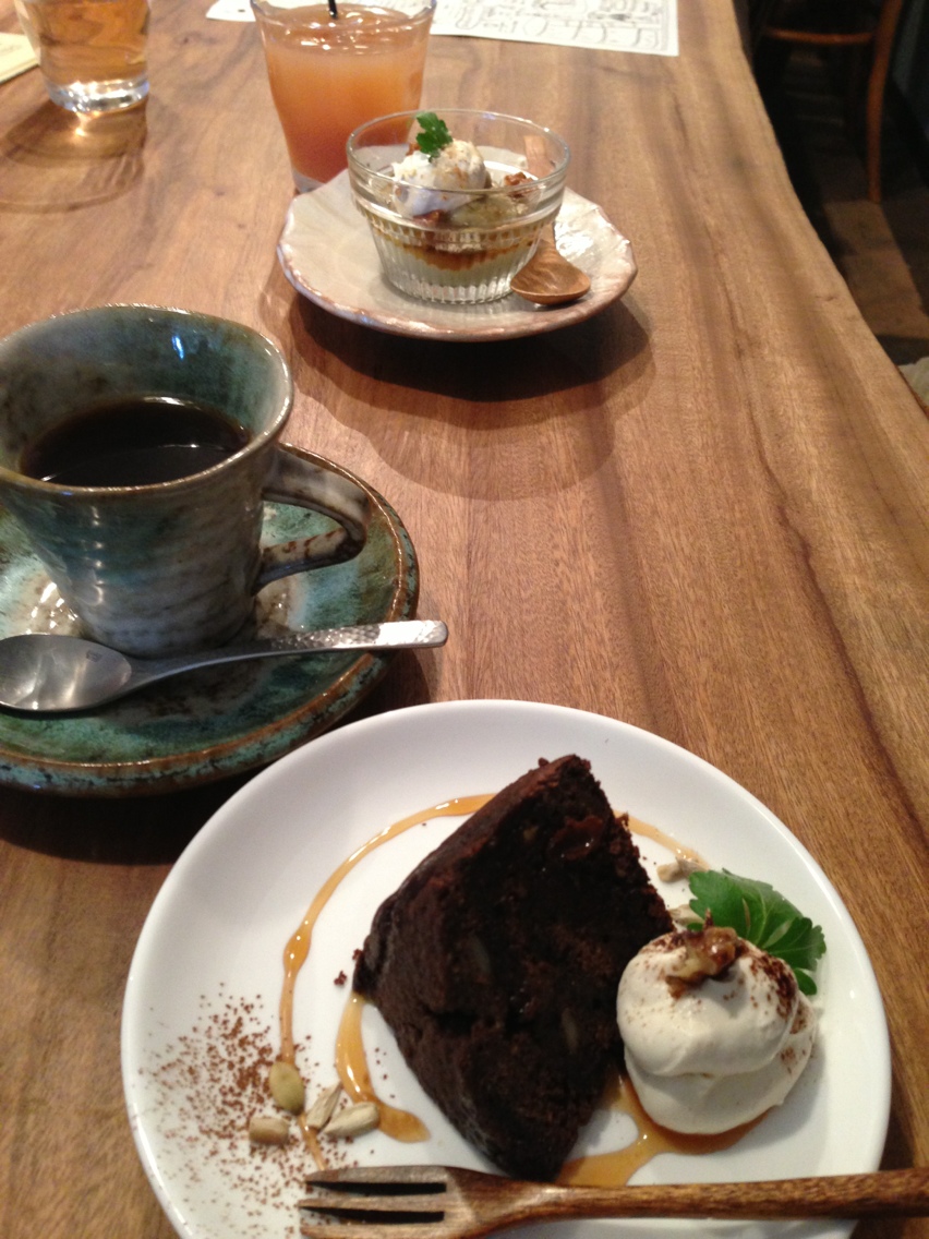 ランチにお肉を使っていないベジハンバーガー、デザートにお砂糖を使っていないガトーショコラ♪