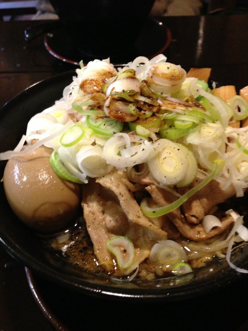 醤油ベースラーメン(黒)か辛いラーメンか(赤)にお好きなトッピングを選びます。ラーメン込み1300円分までのトッピングをつけても1000円ジャストにしてくれます!