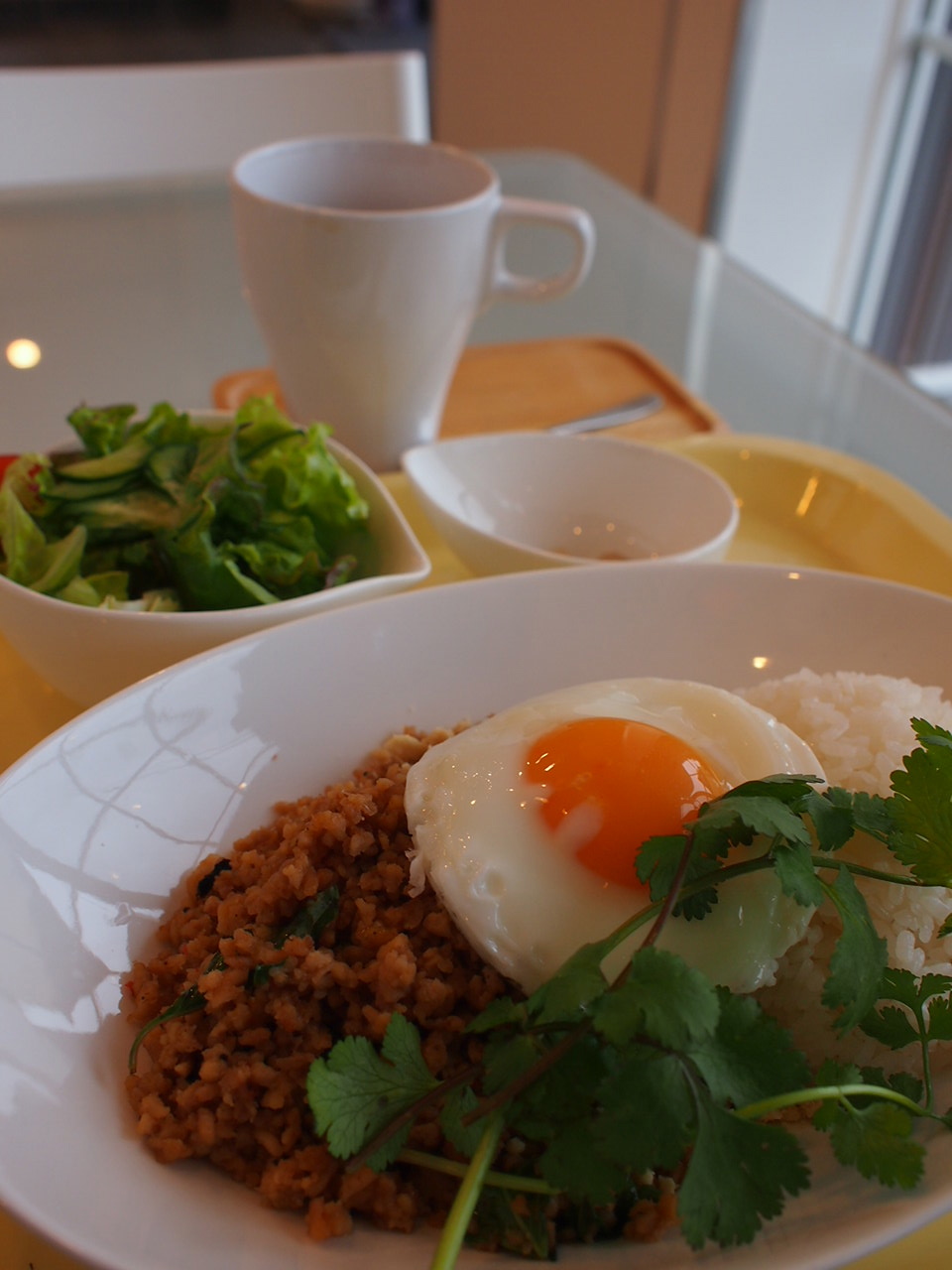 私は「ガパオライス」をオーダー。甘辛タイ風鶏肉のバジル炒めごはんです♪