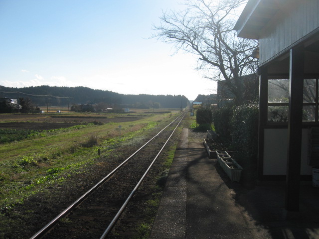 オフィスにて、スタッフのミホさんにお会いした後、イベントのためのロケハンに行くというちえぽんさんにお供して、まずは新田野駅に行きました。小さな駅ですが、ロケーションにとても雰囲気があります。