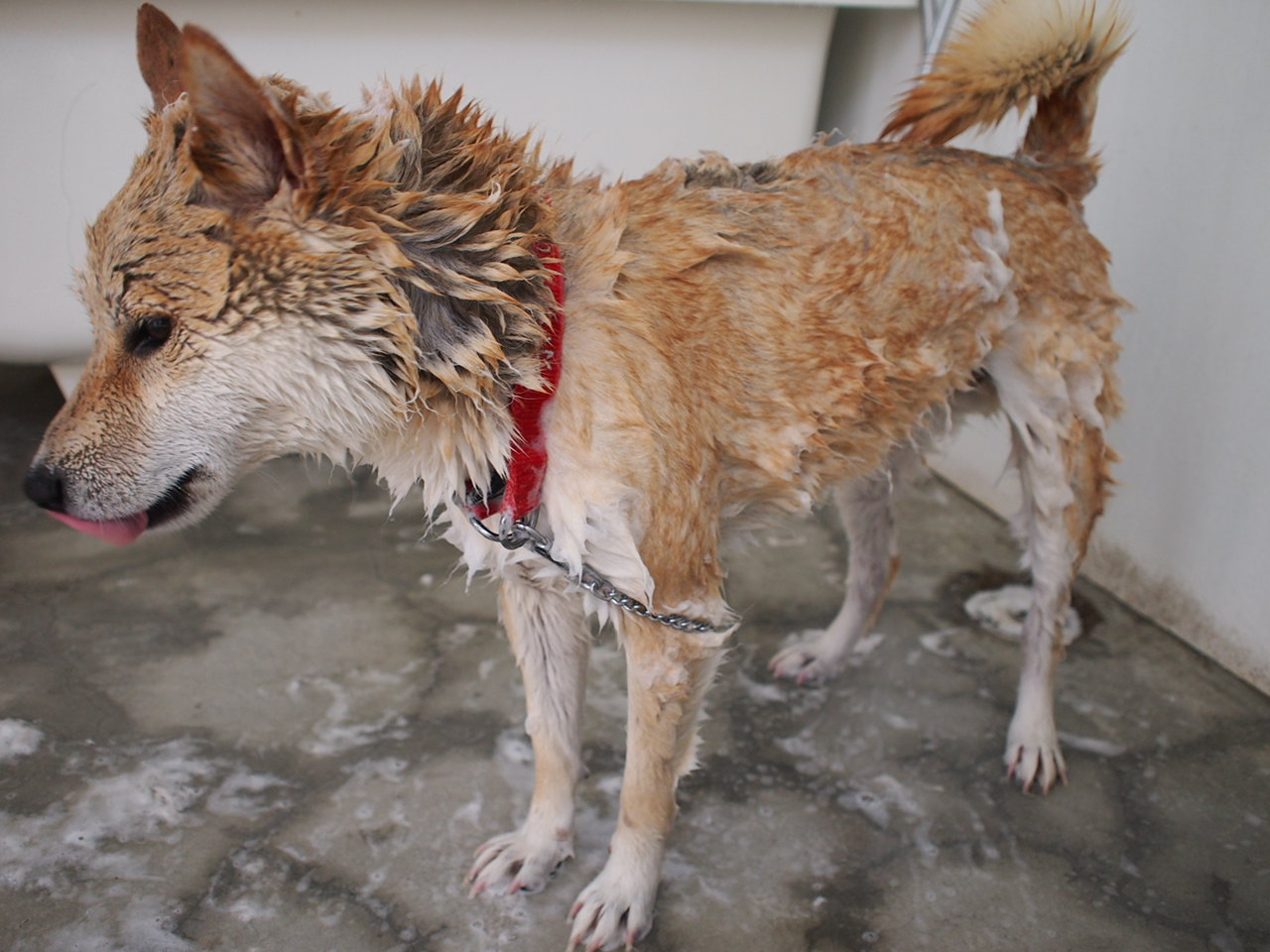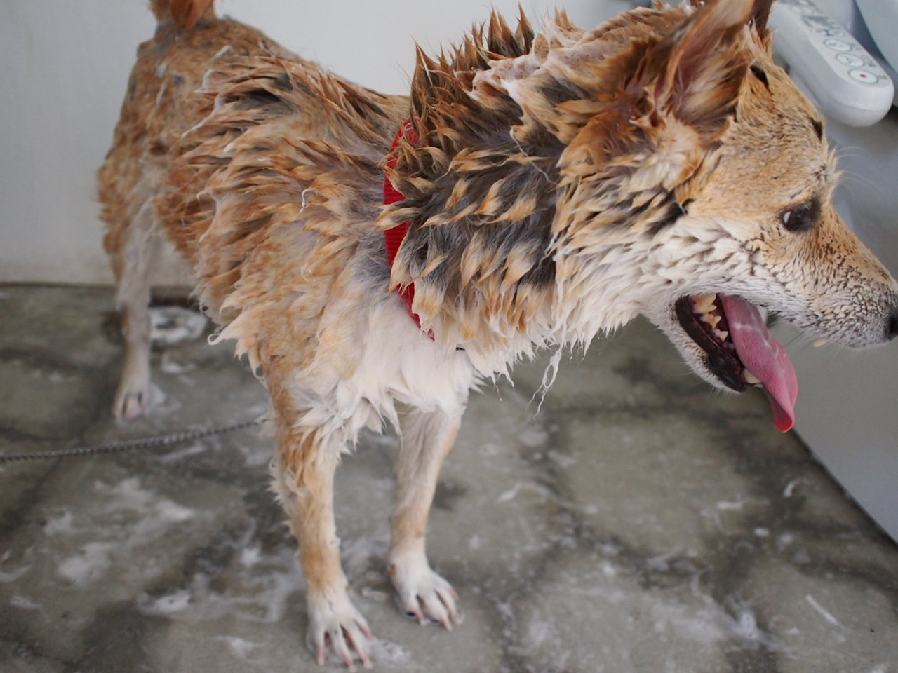 水嫌いのポチが一番嫌がるのがシャンプー。毎回、大暴れで大変です。