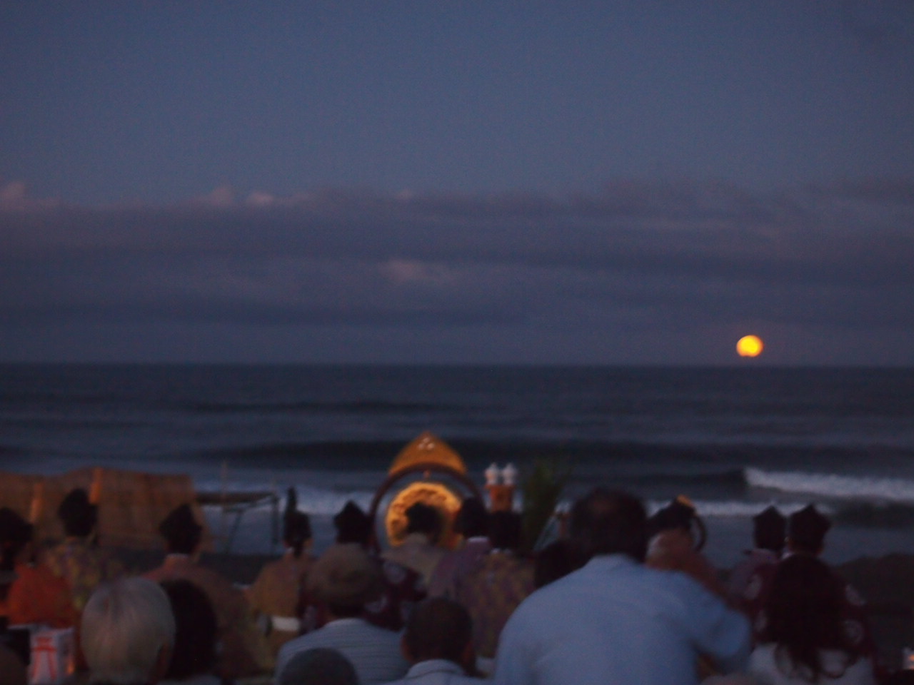 一宮海岸で19時開演、19時07分に月の出というタイミング。昨日が満月でした。