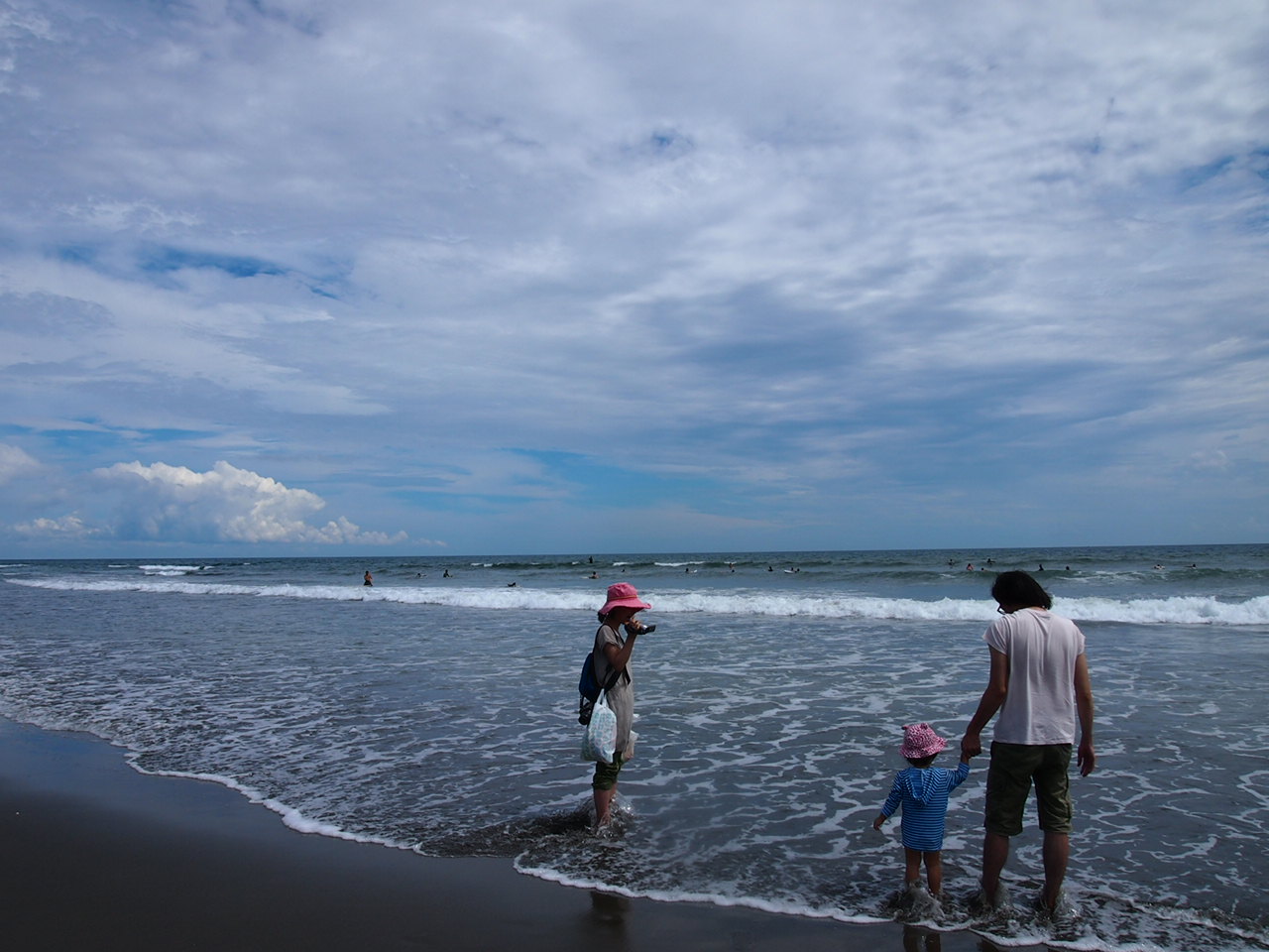 海好きな2歳の女の子。ちょっぴり波を怖がりつつ、お砂場セットで遊びました〜。