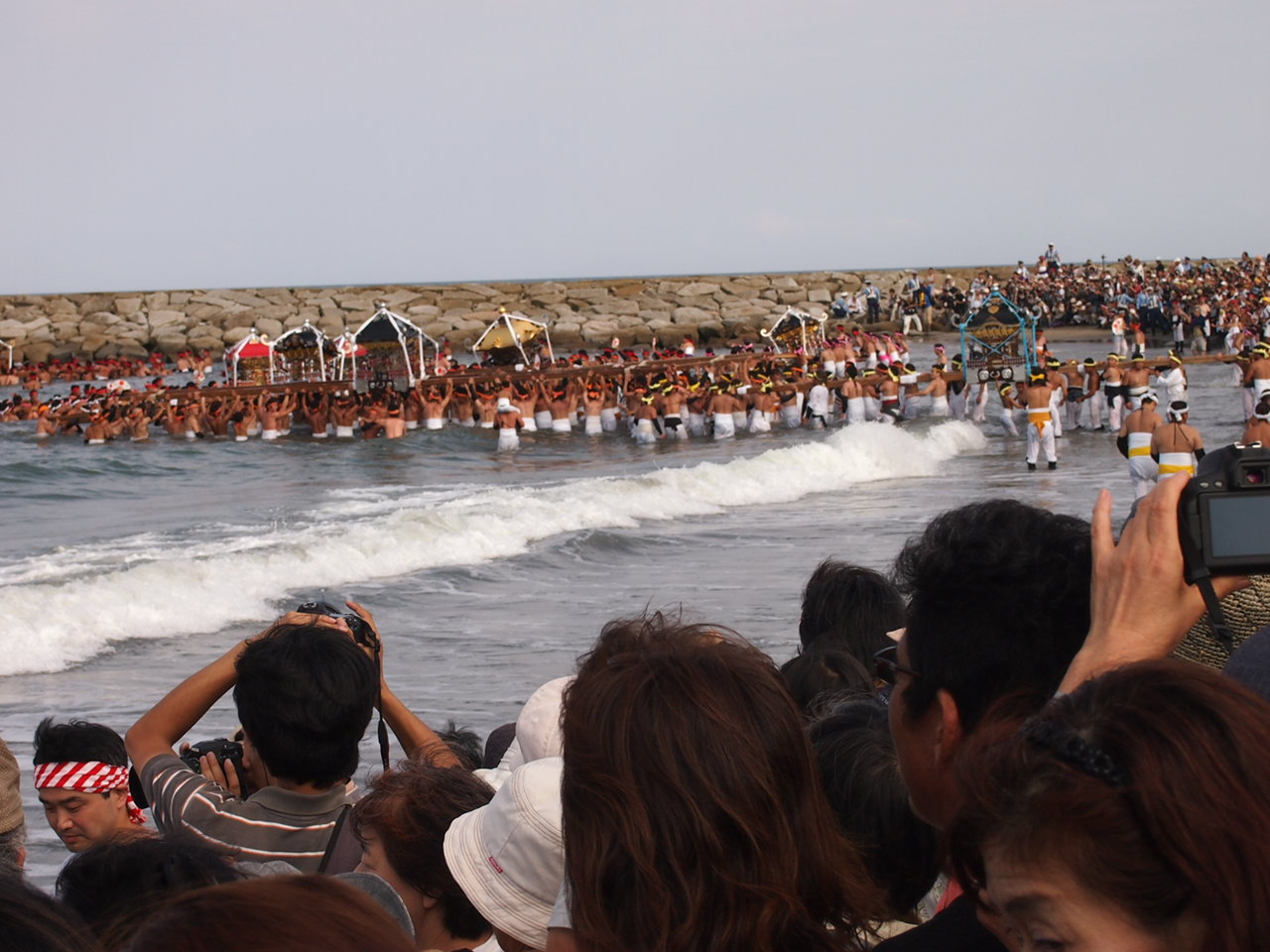 結構に深くまで進んでいき、終いには頭しか見えなくなる担ぎ手も。