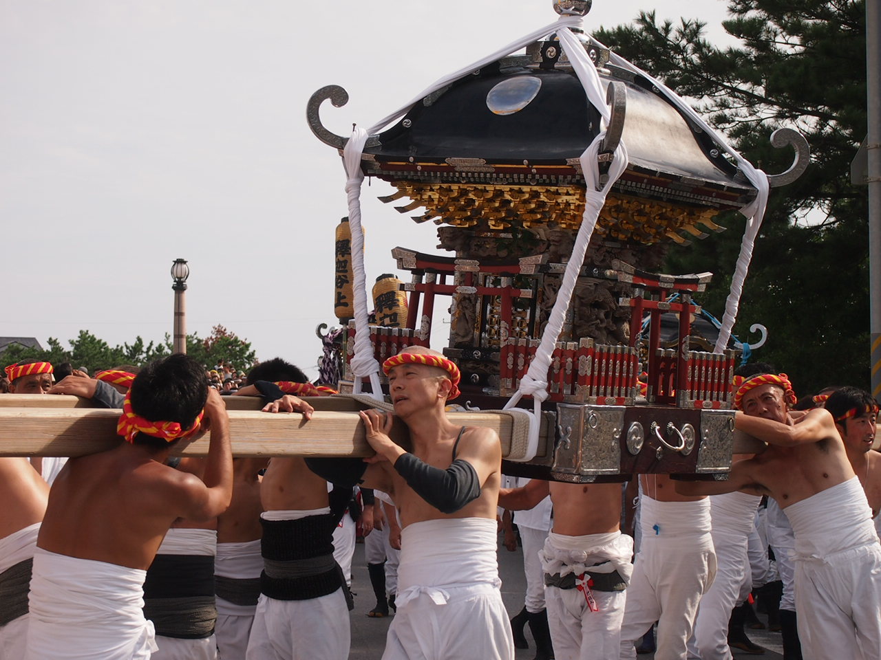 大人も子どもも、声が枯れるまでずっと大声を張り上げながら、ずぶ濡れになりながらも元気に神輿を担いでいました!