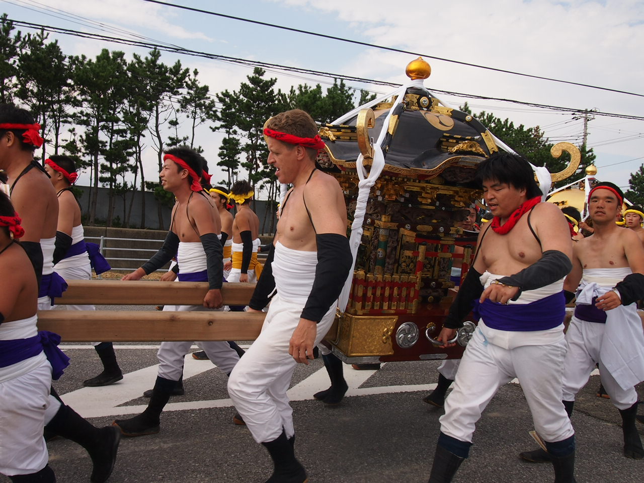 外国の方も大きな声を出しながら神輿を担いでいました!