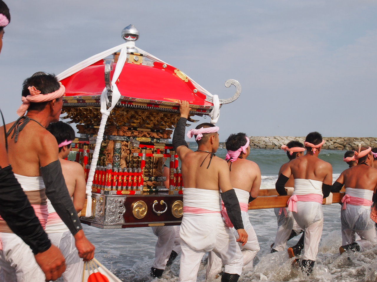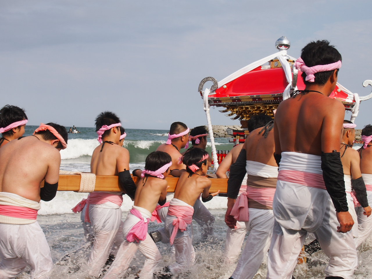そして、海水浴場に到着すると、順番に海へと神輿ごと入っていきます!