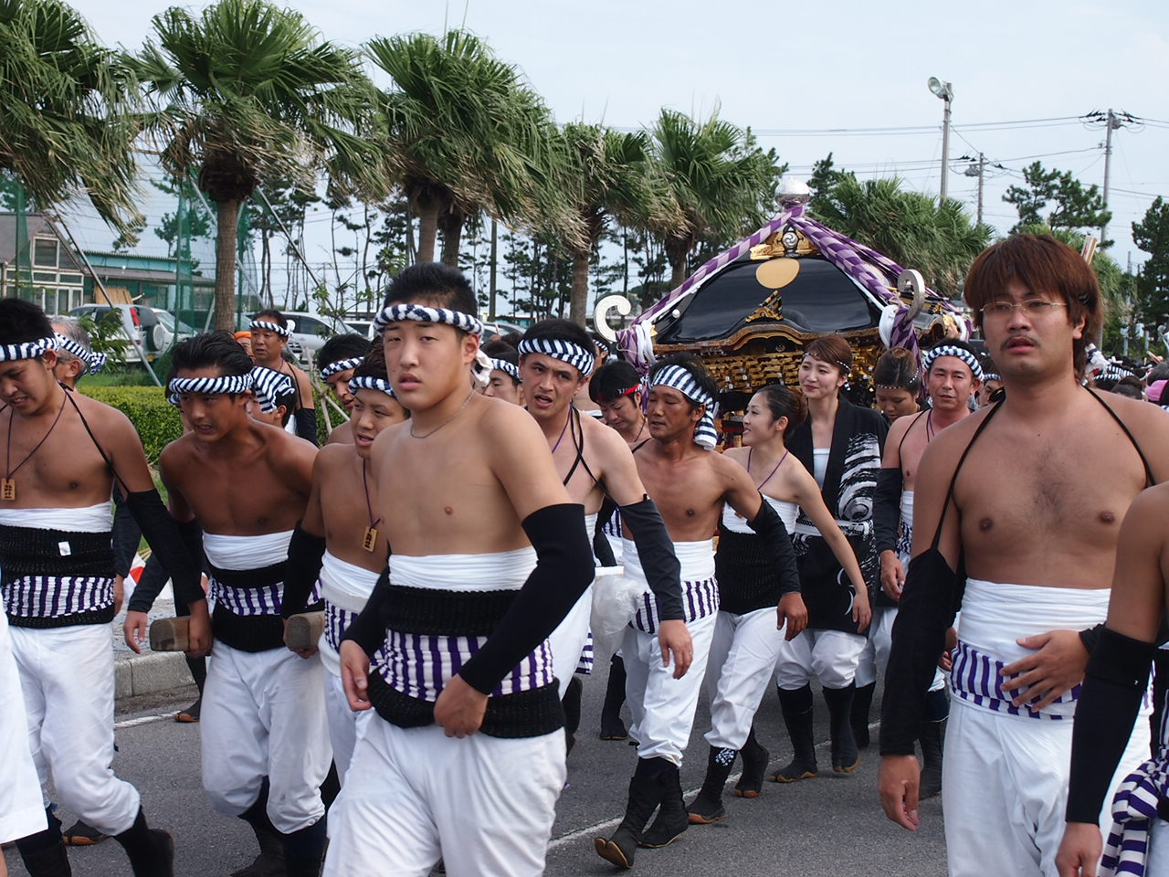 その後、各地区の神輿が汐ふみのために大原海水浴場へ移動していきます。