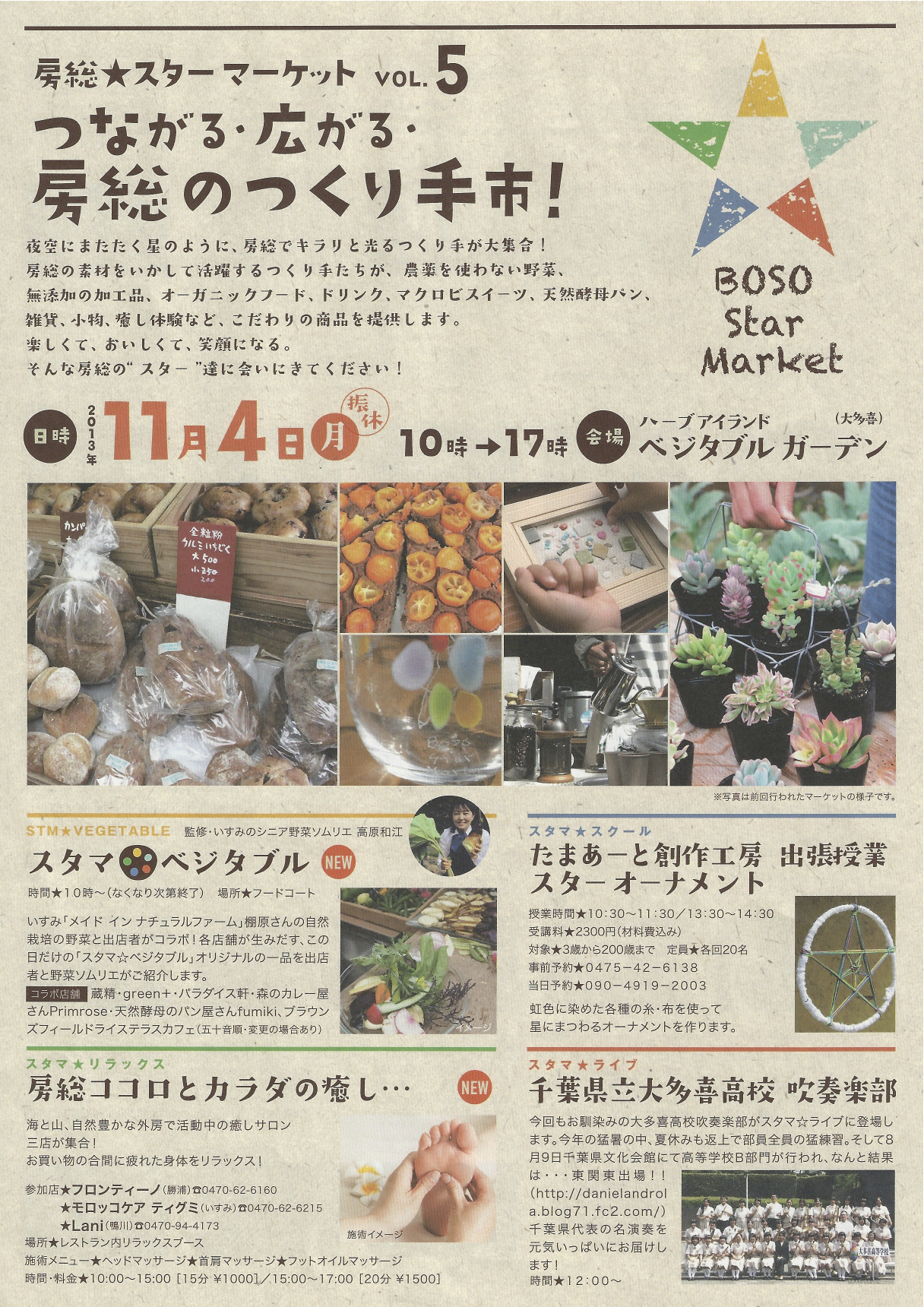そして、実店舗オープンに先駆けて、11/4(月祝)に、大多喜のベジタブルガーデンにて行われる「房総スターマーケット」に初出店いたします!