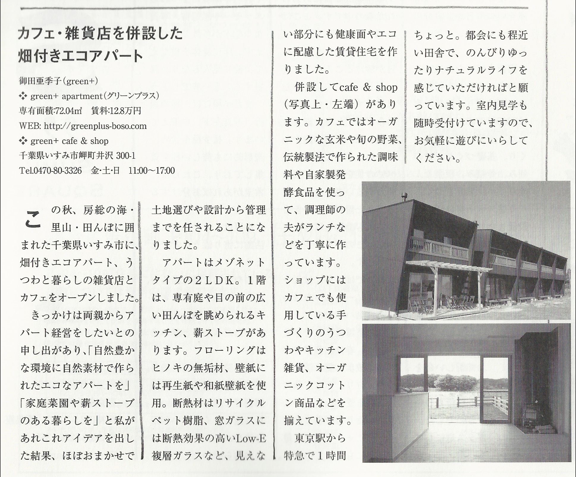 千葉県いすみ市にエコアパートを建てて移住してみようかなプロジェクト。 アパート&ギャラリー&カフェ『green+』の公式ブログです。 公式HP、公式Facebookもあります! 最新情報はFacebookでチェックしてください♪ Since 2011.07.21
