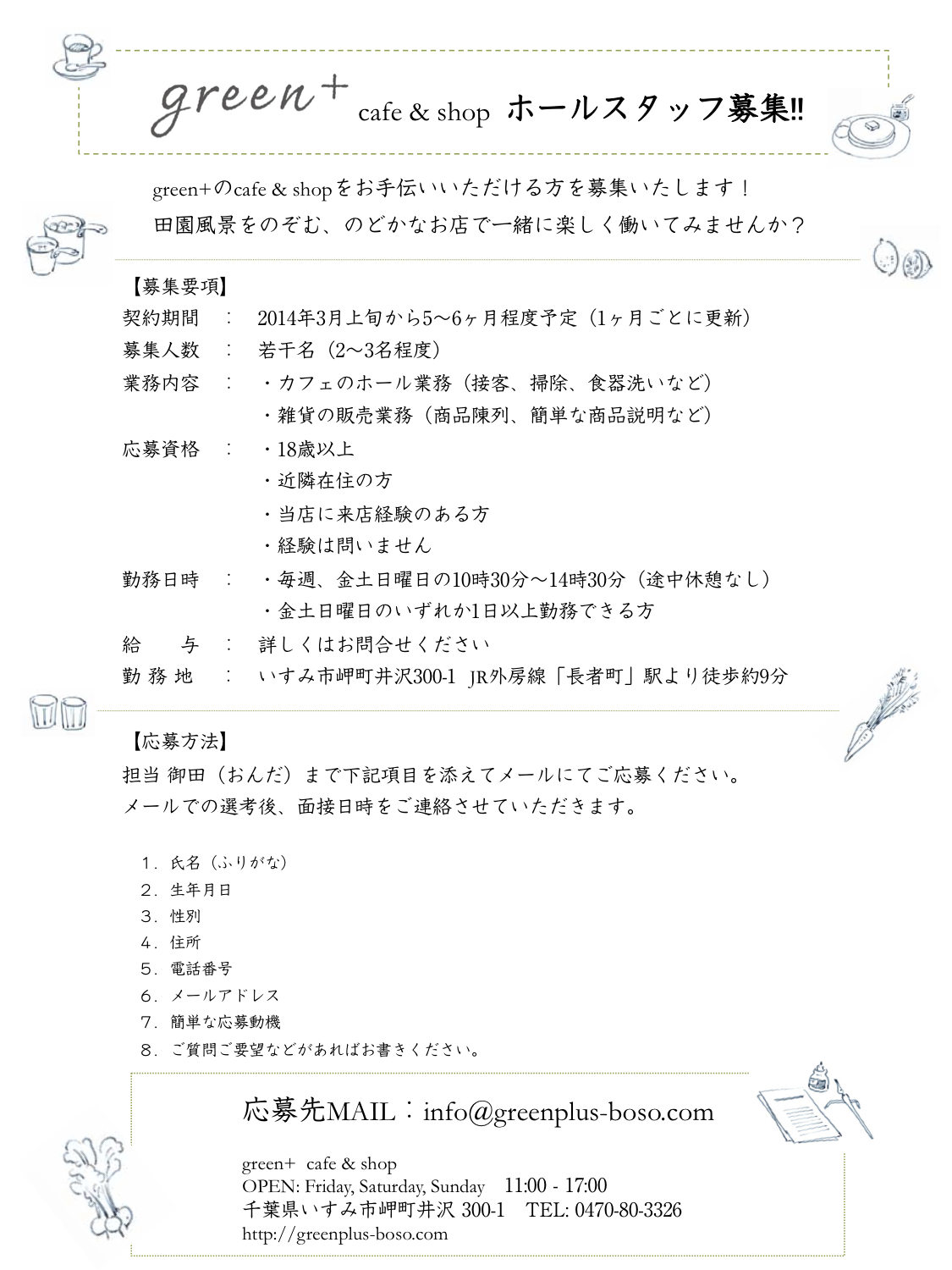 千葉県いすみ市にエコアパートを建てて移住してみようかなプロジェクト。 アパート&ギャラリー&カフェ『green+』の公式ブログです。 公式HP、公式Facebookもあります! 最新情報はFacebookでチェックしてください♪ Since 2011.07.21