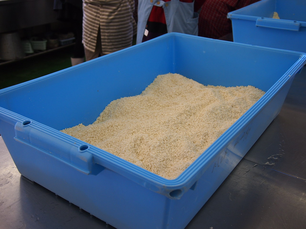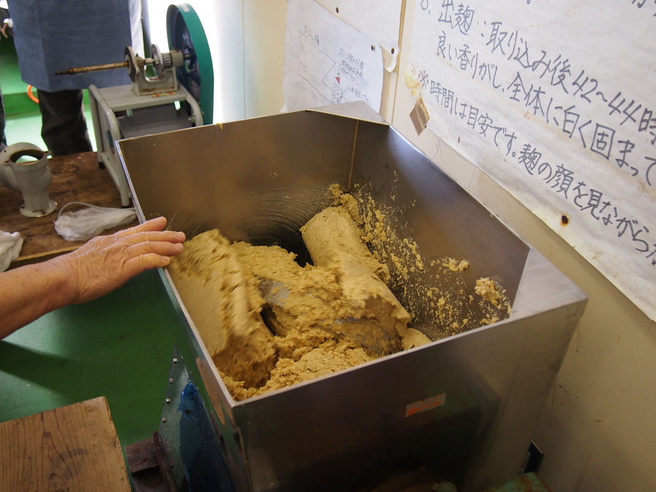 到着すると、すでに麹に塩をまぶしたところでした。