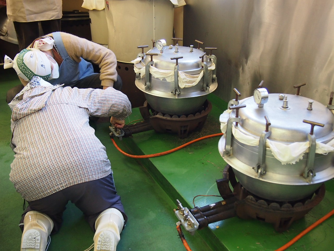 ここまで、お米洗いに一日、麹作りに一日、麹の切り返しに一日、大豆と合わせるのに一日…。合計四日間の行程でした。