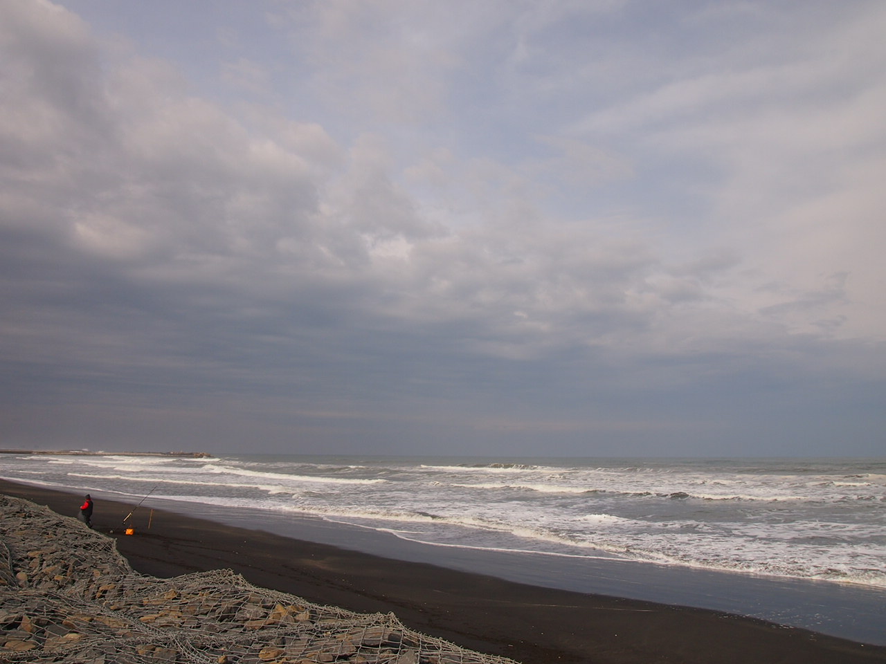 海が荒れていても頑張る釣り人さんが。獲っているのはやっぱりカニなのかしら〜?