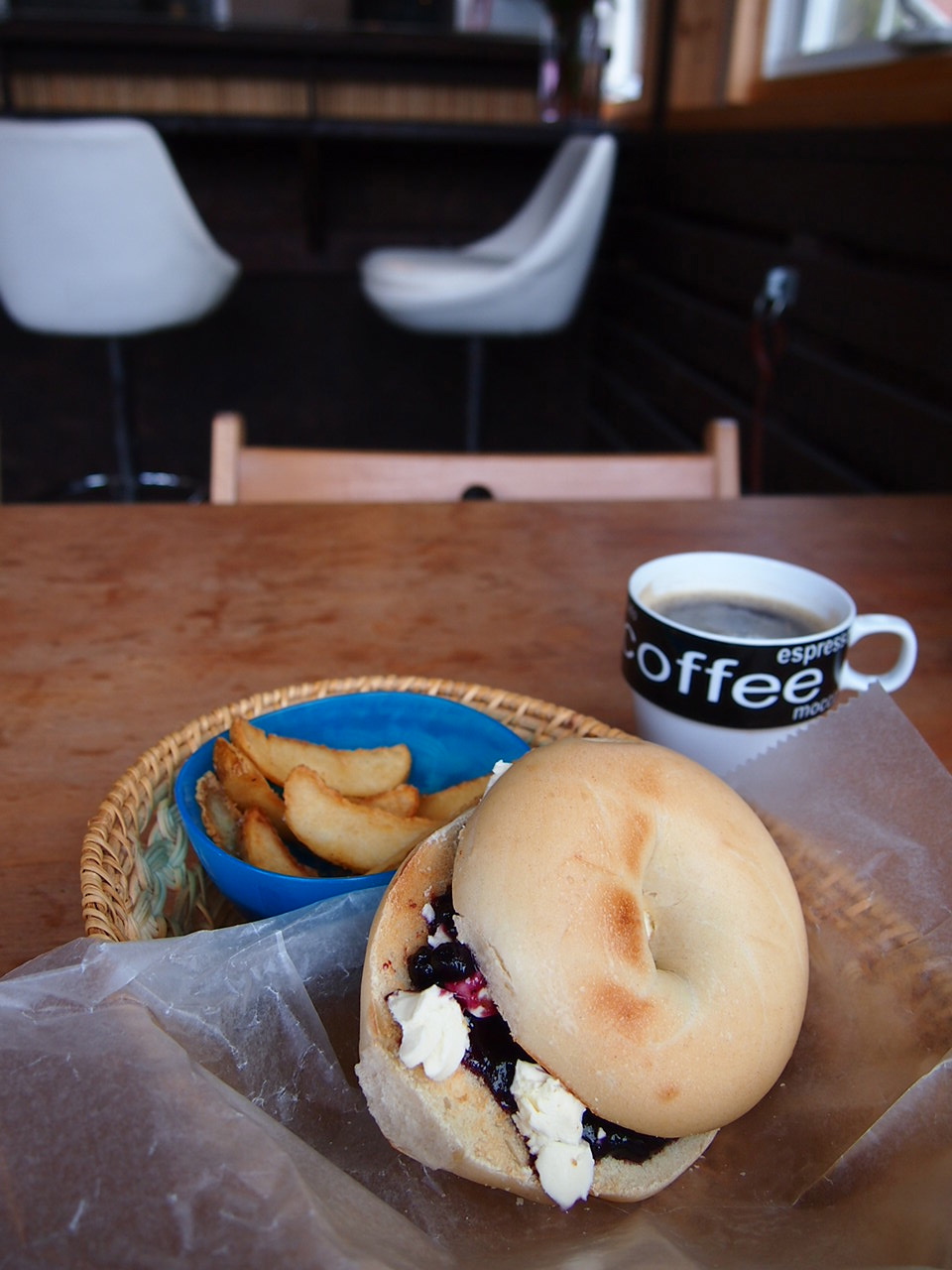 代わりに、ブルーベリー&クリームチーズのベーグルをオーダーしました。