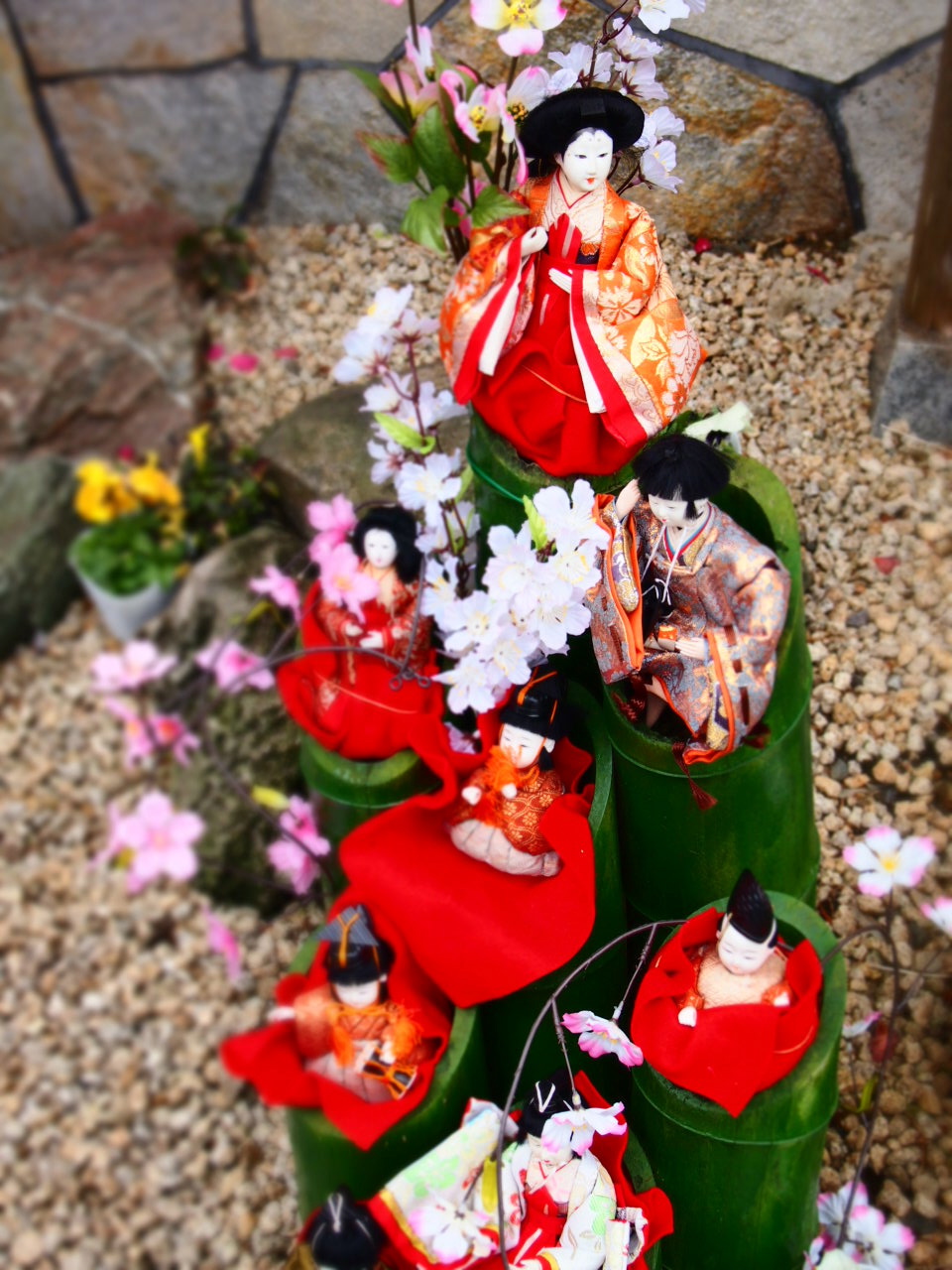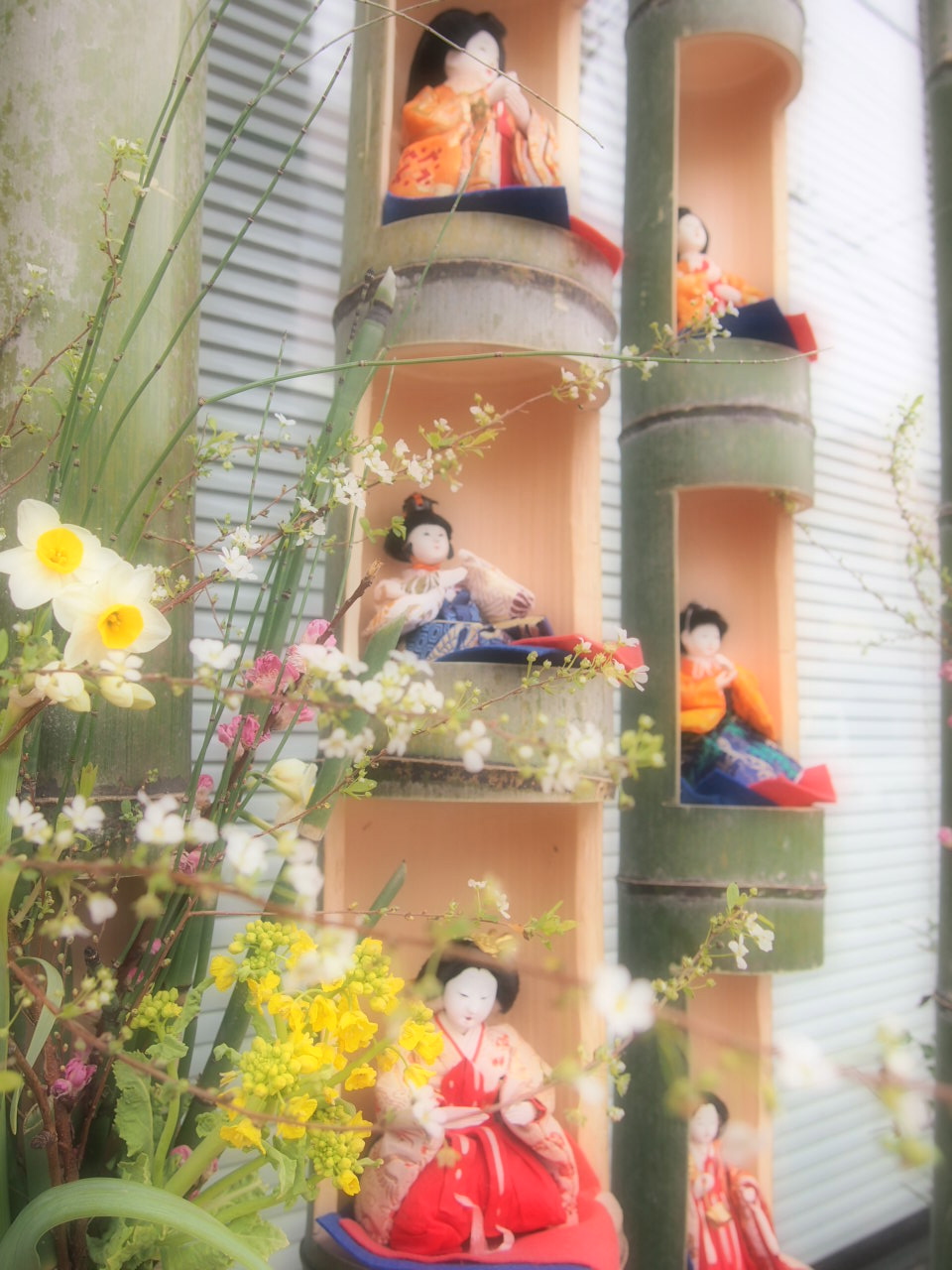 竹をくり抜いて飾ってあるお店や、吊るし雛と併せて飾ってあるお店など、見応えがありました♪