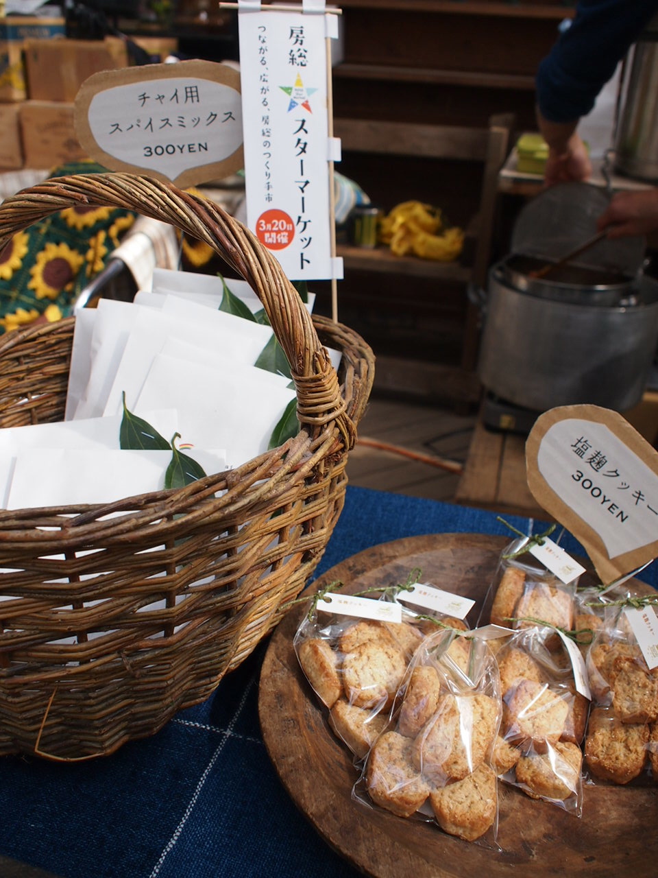 「うつわや+Café草so」では塩麹クッキーやチャイ用スパイスミックスを。自分で煮出したお茶にスパイスミックスと豆乳を入れれば、自宅でチャイが飲めるとのこと♪