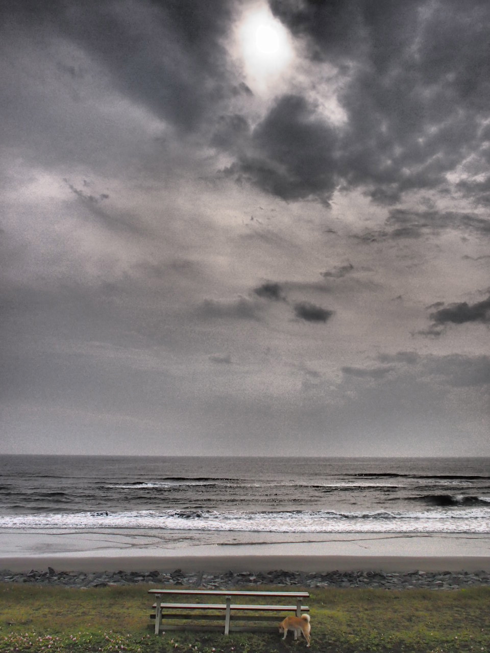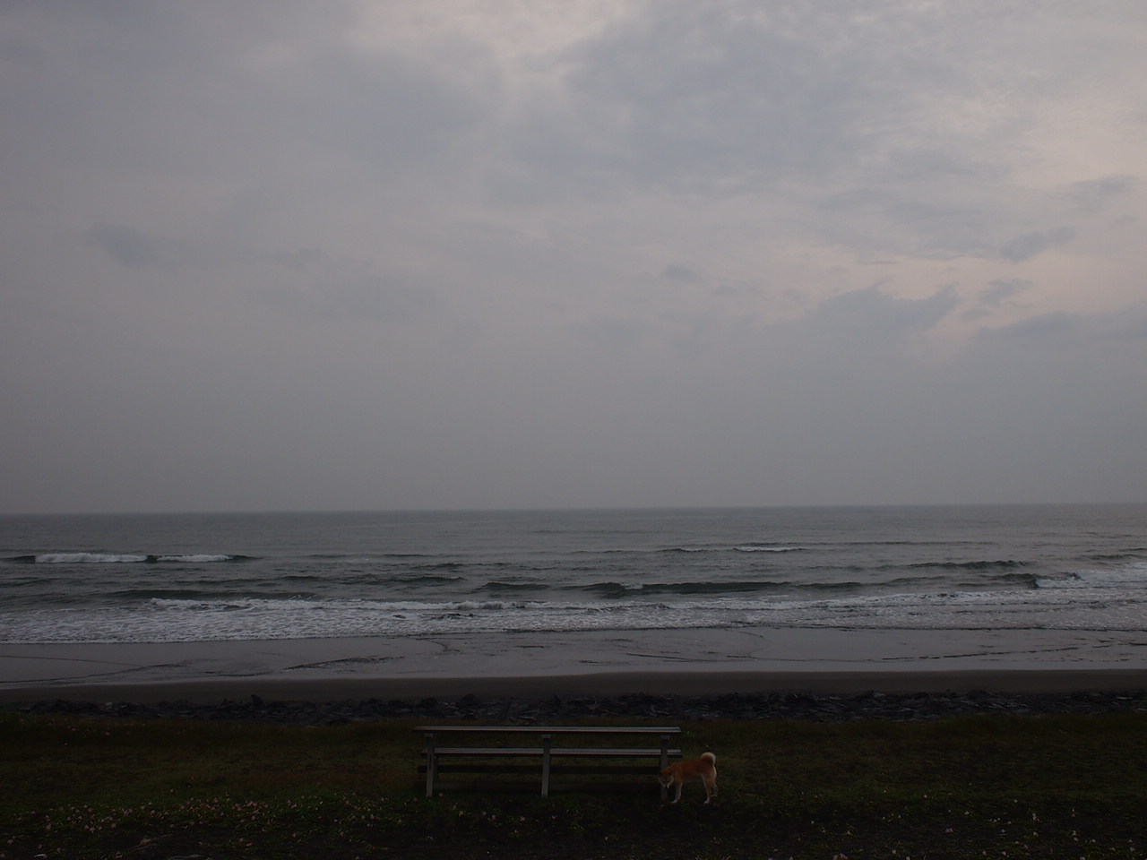 で、こんな時、動物はいつもと違う行動をとるとも言われていますが、ポチはいつも通り、浜辺の草を食べていただけでした…。