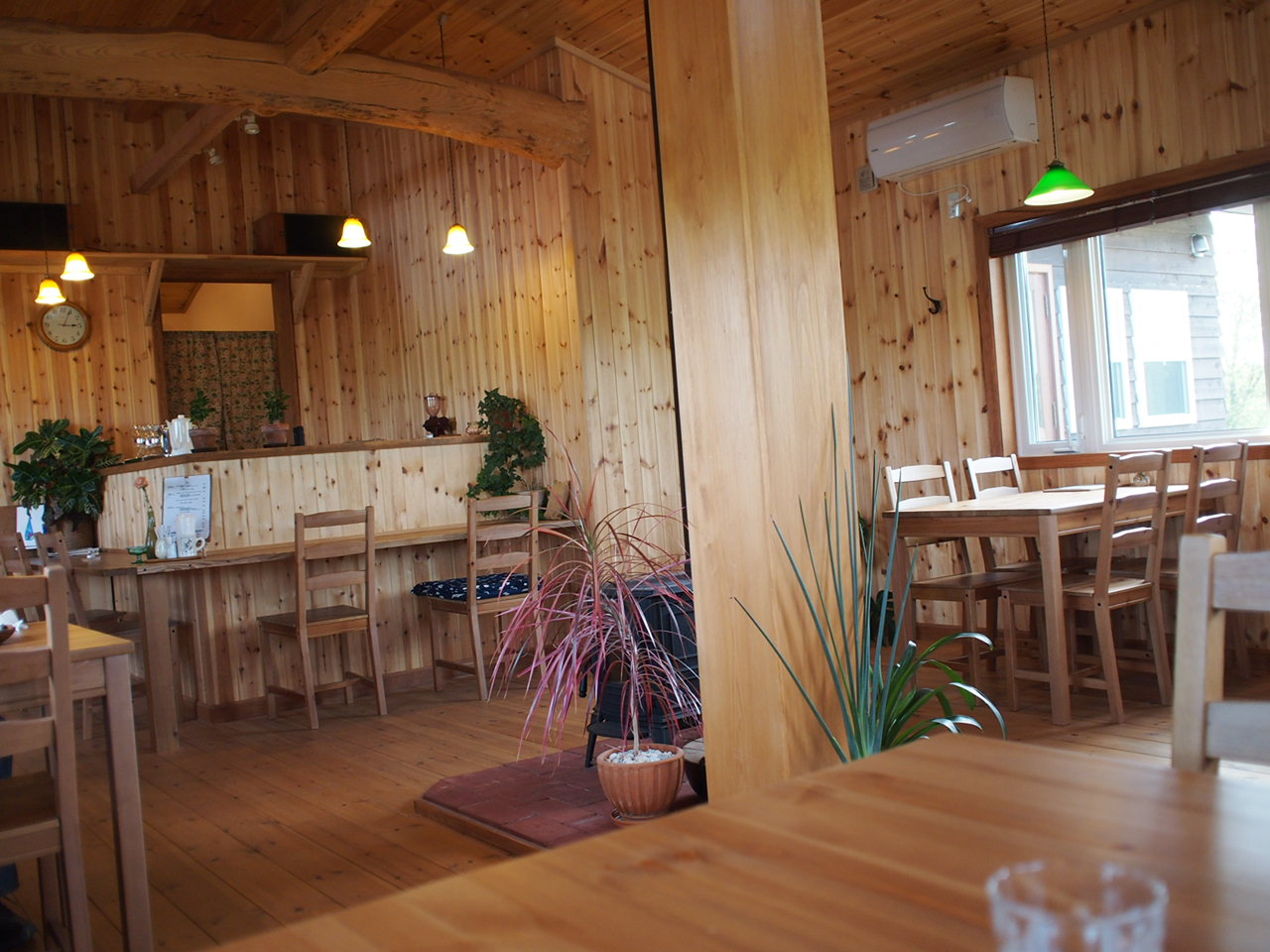 店内は立派な梁のある木のぬくもり溢れる空間です。