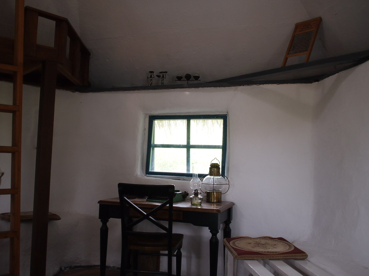 こちらは、断熱材に籾殻と土を使用した非電化籾殻ハウスと、ストローベイル(藁)断熱ハウスの室内。