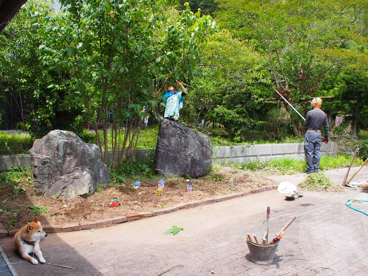 (ちょっと植えるだけと思って行ったら、花壇の整備からのスタート。思いがけず重労働に…)