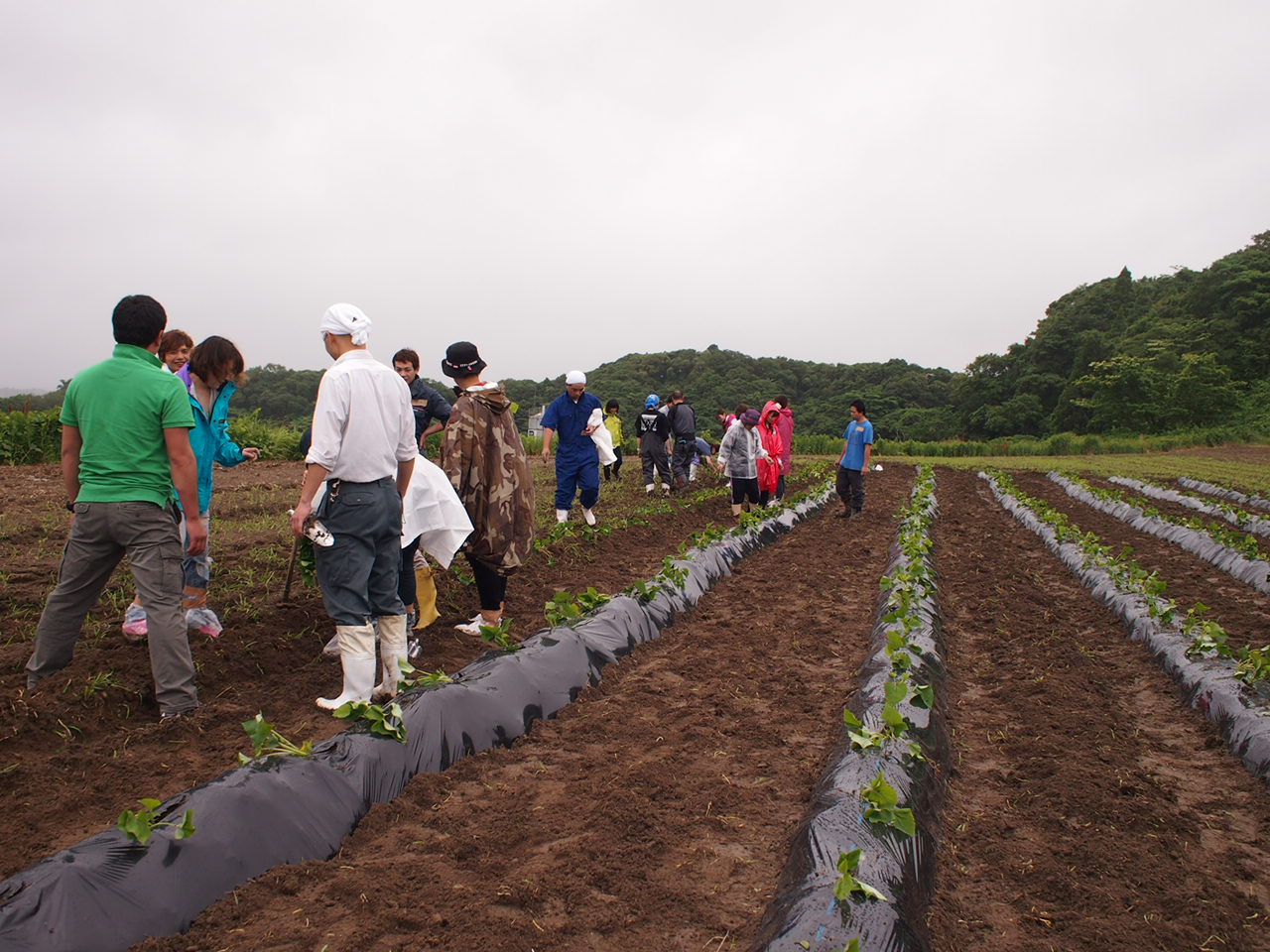 さんで「牧場の集い」に参加して、さつまいもの植え付けや、石釜料理を作って食べて、子牛と触れ合ったり♪